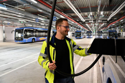 Dies erfordert maximal effiziente Prozesse, wie vorausschauende Wartungen der Infrastruktur und optimierte Betriebsplanungen. Denn in Spitzenzeiten sind auf Münchens Straßen bis zu 500 Busse unterwegs. Die E-Busse der Flotte müssen jeweils mindestens 280 Kilometer zuverlässig bewältigen – bei jeder Witterung. Für den Ladevorgang, der je nach Größe der Busse zwischen drei und vier Stunden dauern kann, bleibt nur die Zeit zwischen Betriebsende und -anfang. Das Betriebsmanagement muss also wie ein Uhrwerk laufen. „Damit solch komplexe Abläufe reibungslos funktionieren, braucht es datengetriebene IT-Lösungen auf Basis von KI“, sagt Martin Klaus, Teamleitung IoT und Data Lab bei den SWM. „Daten und Vernetzung sind die Basis für automatisierte Prozesse, intelligente Anwendungen und Transparenz.“