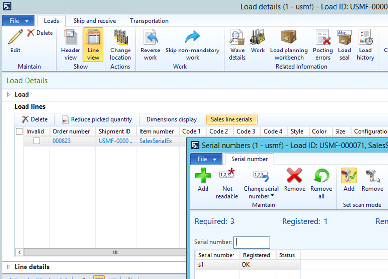 It is possible to access the sales serial recording done against the sales order line through the Load details form.