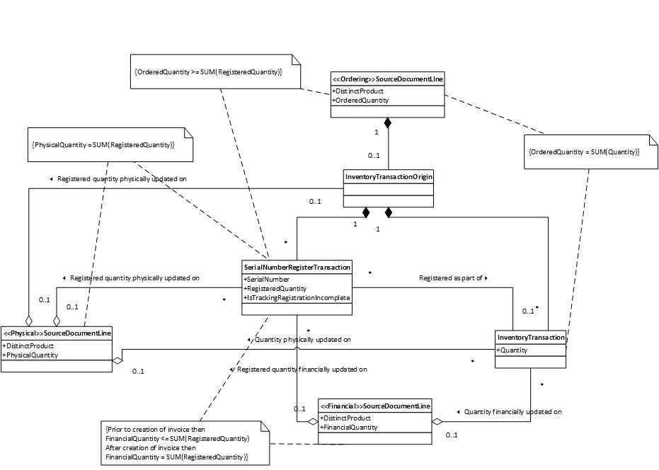 As it can be seen from this conceptual model, the sales serial number tracking will be linked to the inventory transaction origin and it is important to understand that the actual validation of unique sales serial numbers is done against this entity.