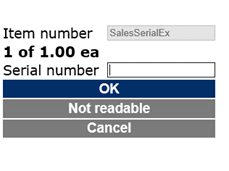 In case of a not readable serial number the function of using Not readable can be used which will register the serial number as not readable.