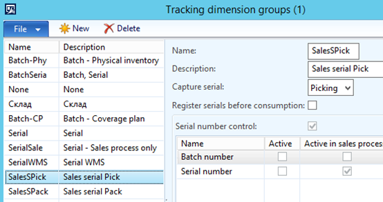 Recording of sales serial numbers via Picking list registration form