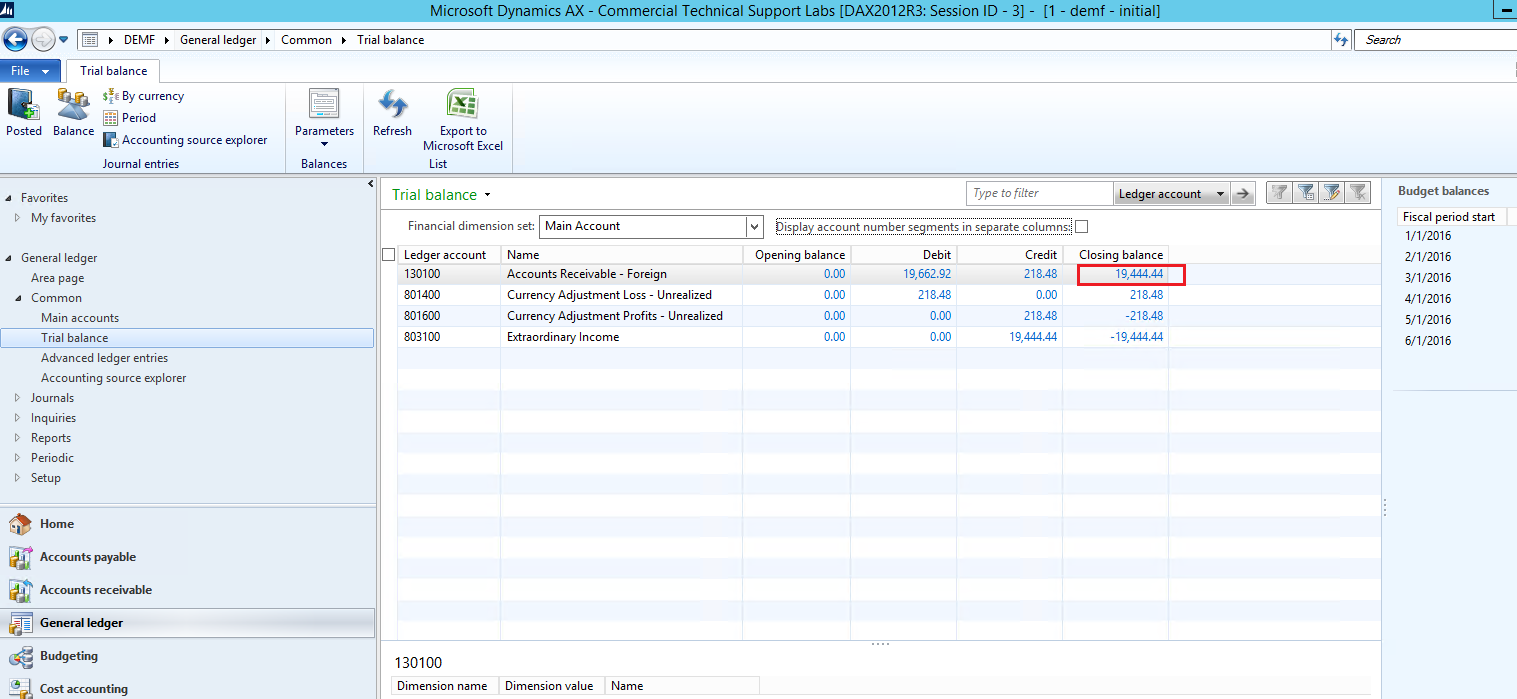We can then rerun the exchange adjustment and note that my Trial balance shows that the balance on my summary account is back to 19444.44.