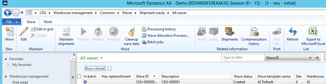 In rare cases, for example if the SQL connection is ended, it is possible for the wave processing to end up in an inconsistent state where the batch job appears to be running but the processing is stopped. The wave can’t handle errors like this, so an attempt to clean up failed waves is done when the next wave runs. Alternatively, you can use the Clean up wave data button to clean up the current wave if it is in an inconsistent state.