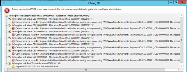 The errors from the batch tasks are also part of the batch jobs log. The most important information is typically at the bottom. In this example the log is telling us that the shipment was not fully allocated.