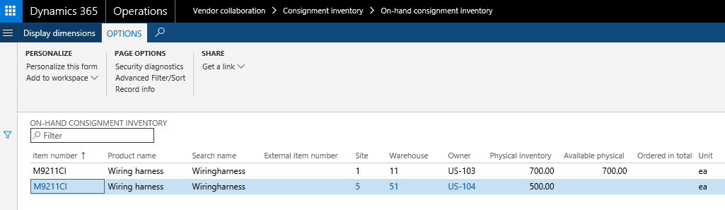 To track the ownership of the on-hand inventory, it is possible to associate a vendor account with an inventory owner dimension value from the page: