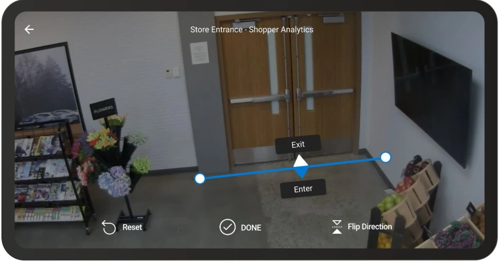 - Shopper analytics—using cameras pointed at entry and exit locations, receive counts and trends for footfall in the store, and how they change by the hour and by day. You can also identify the busiest day of the week and use that to plan shifts.