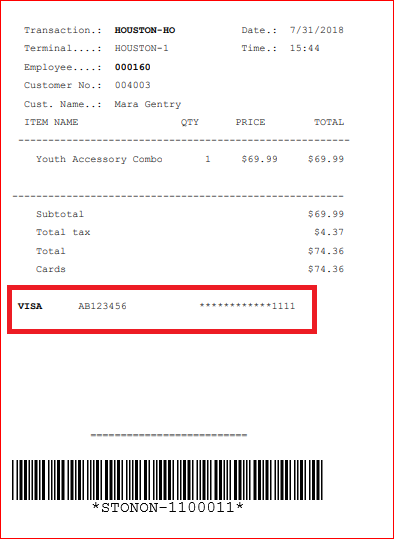 The fields that were added to the Customer Credit Card Receipt are printing based on the Card Tender Details field added to the Footer of the Customer Receipt.