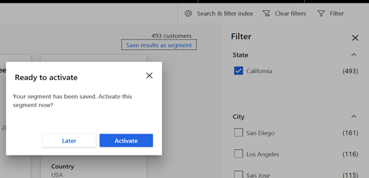 Upon clicking Save, you will be prompted to either activate the segment now or later.