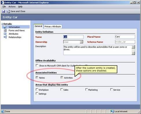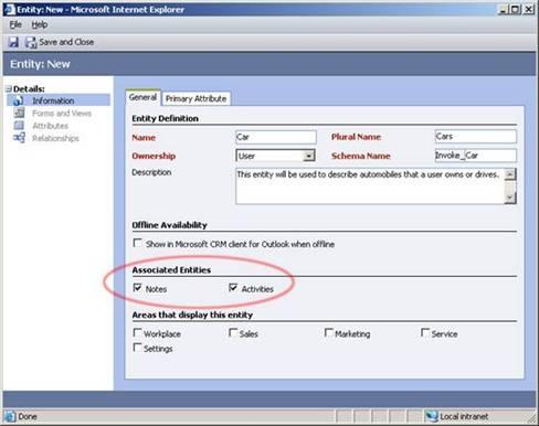 One very annoying thing in Microsoft CRM 3.0 is the decision to enable Notes and/or Activities on your Custom Entity must be made up front at design time of the Entity. After the entity is defined, the UI no longer lets you change this.