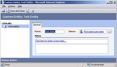 Ok, so enough about me, on with the post. The new customizations features in Microsoft CRM 3.0 are fantastic, with the ability to add Custom Entities Microsoft CRM became exceptionally flexible. With all this flexibility, we have been able to support many different business scenarios. These scenarios often require the system to be extended via Custom Entities and sometimes many Custom Entities (we have designed systems with over 30). As part of our design process, we decide up front if an entity will support Notes and/or Activities. We make this decision based on business needs. As an optimization, our default stance is to turn it all off and enable them for entities that warrant it. We do this because out-of-the-box when you enable Notes the system will add the “Notes Control” to the form and, when you enable Activities, the system will add an “Activities” and “History” left navigation item to the form. There is no “supported” way to remove these, so we only turn it on if needed.