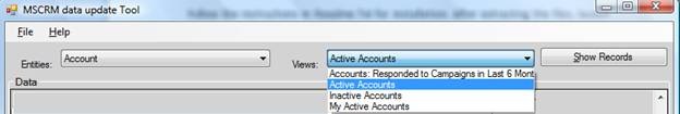 The System and User views of the selected entities are shown in the selection box. When user selects a view and clicks the “Show Records” button, we retrieve all the columns of that particular view and show to the user in the data grid.