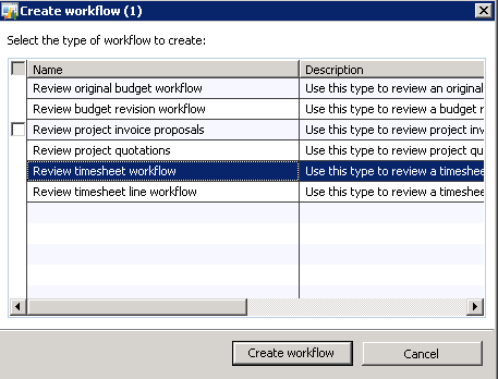 There are two types of workflow types that have been added to set up workflow in Microsoft Dynamics AX 2012 specific to timesheet: