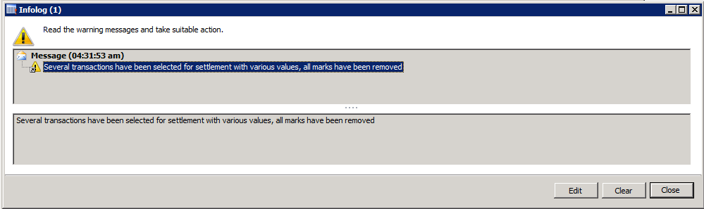 When trying to settle several vendor invoices at the same time in a vendor payment journal you can run into following infolog message: