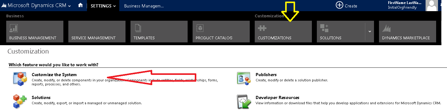 - Navigate to Settings > Customization > Customize the System or Solution Explorer