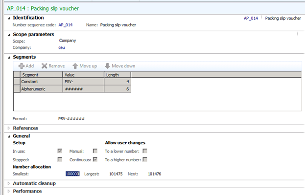 This will return the Number Sequence that is causing the error message. To find the Number Sequence you will want to go to the Number Sequence list page. Organization Administration | Common | number Sequence | Number Sequences