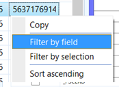 8. Enter the Number from the error message in the filter form and click ok