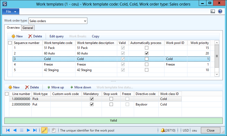 Now we need to set up a work template for each zone. The work template will generate the work for the zones. To open the Work templates form, use the following path: