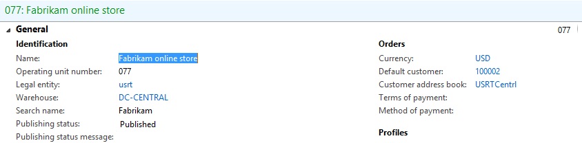 - Log into an AX Client > Go to Retail > Common > Retail Channels > Online Stores > Edit your Channel Database (yes edit it)