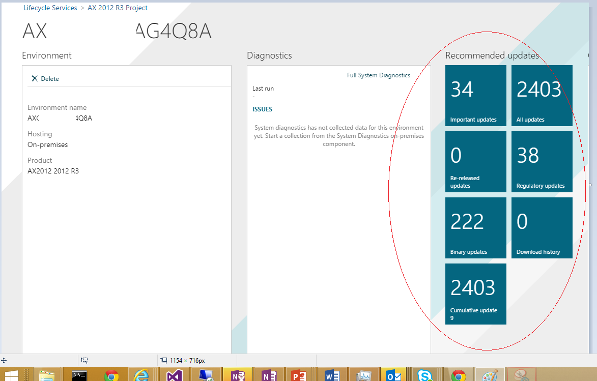 In order to use this experience, you must have System diagnostics enabled for your AX 2012 R3 environment. Select your AX 2012 R3 environment in Lifecycle Services.
