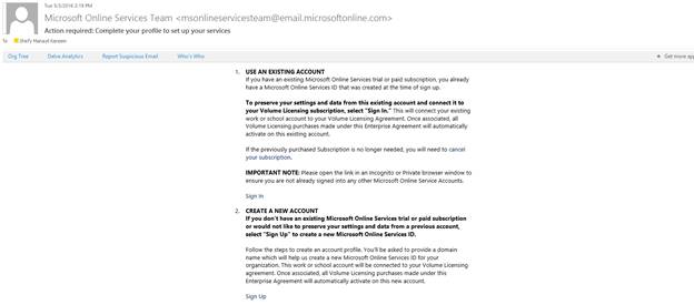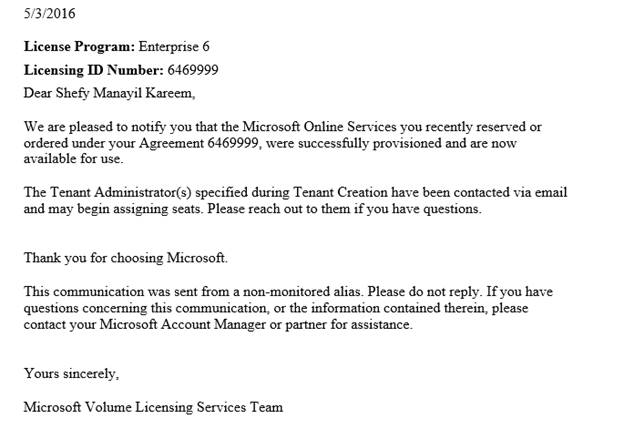 will be applicable to you and the service ready email for your tenant (as shown in step 6a) is sent to the contact O365 tenant