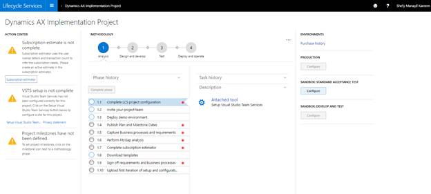A new implementation project is created for you, which will be used to implement, deploy and go-live with the new Dynamics AX.