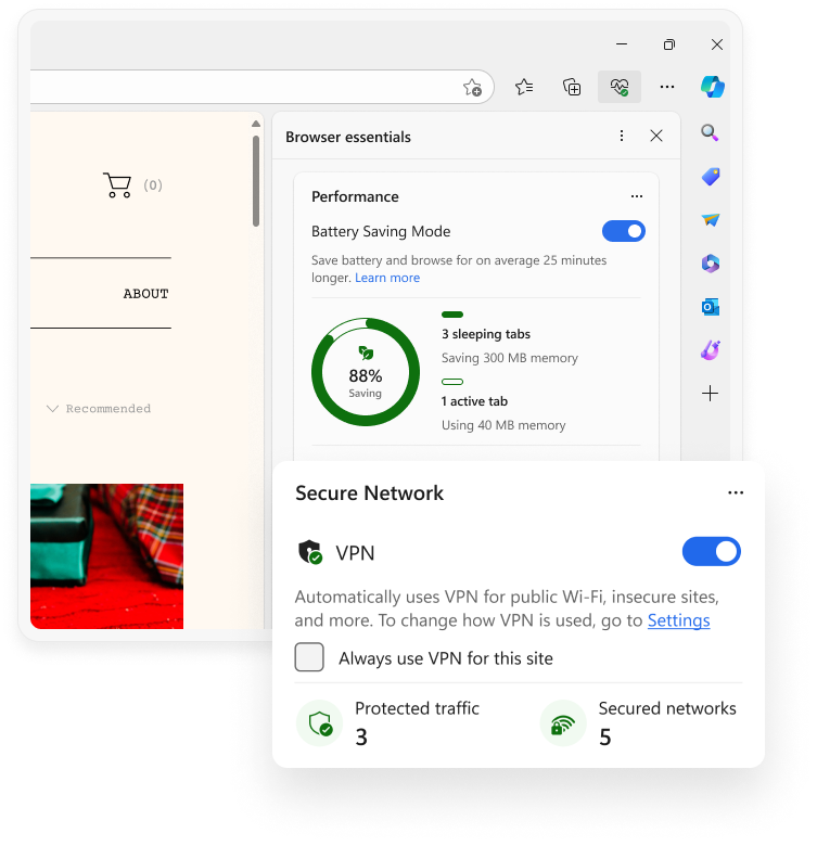 Microsoft Edge is loaded with security features and advanced controls designed to keep you safer from online threats while you shop.