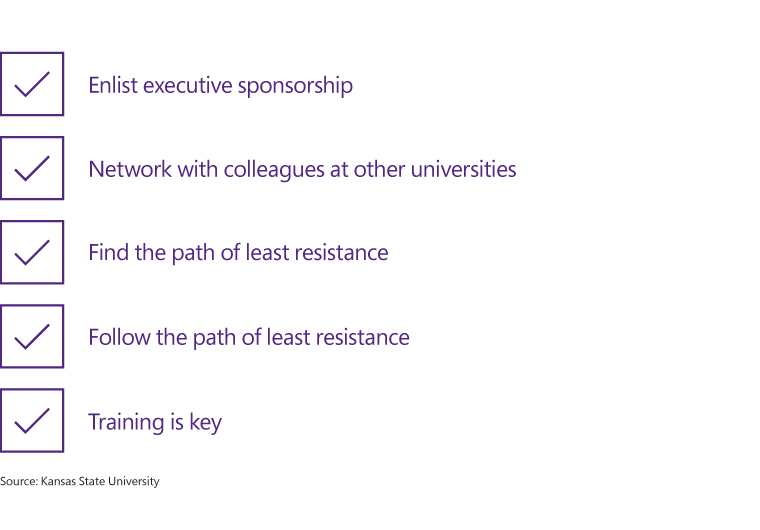 Miriam recommends that other universities considering this type of adoption take the following 5 steps to smooth out the transition:
