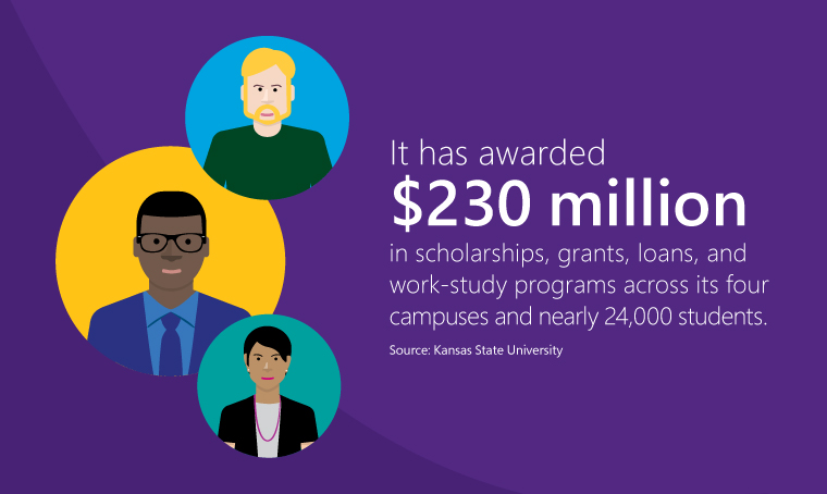 Kansas State University has a rich history. Opened in 1863—the same year that Kansas became part of the United States—it was the first fully operational land-grant college in America. One hundred and fifty four years later, the school has impressive numbers—it has awarded $230 million in scholarships, grants, loans, and work-study programs across its four campuses and nearly 24,000 students—and lofty goals to match: K-State has committed to becoming a top 50 public research university by 2025.