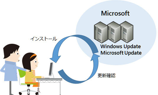 - Windows や Office などのマイクロソフト製品については、Windows Update / Microsoft Update の自動更新機能を使うことで、自動的に更新が適用され常に最新の状態に保つことができます。詳細については、Windows Update の利用手順を確認してください。