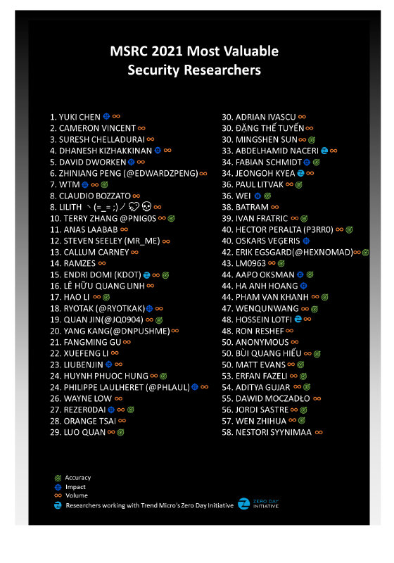 2021 年 MSRC 最優秀セキュリティ研究者の皆様、おめでとうございます。