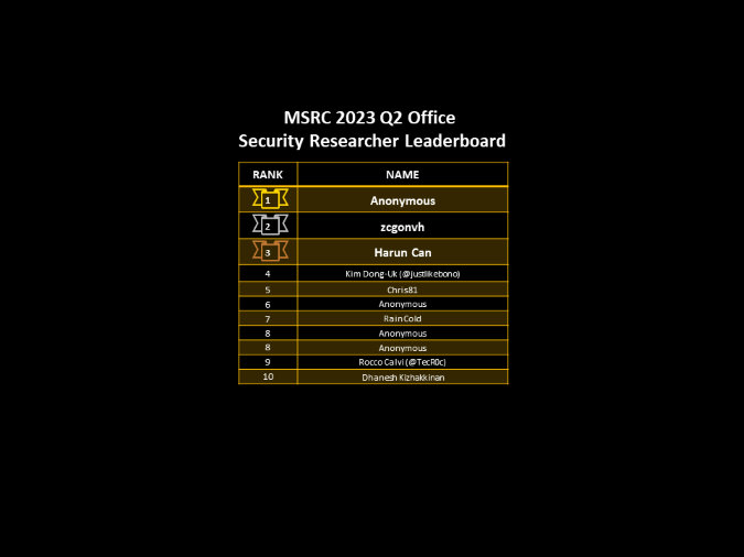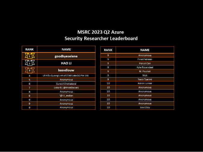 Congratulations to the Top MSRC 2023 Q2 Security Researchers!