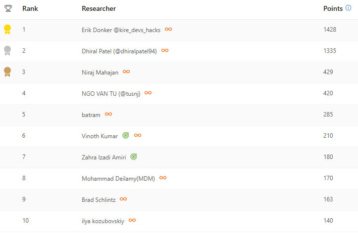 Today, we are excited to recognize this year’s 100 Most Valuable Researchers (MVRs), based on the total number of points earned for each valid report.