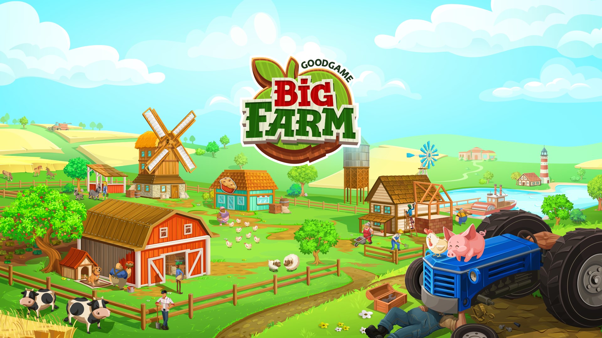 Create your dream farm in this award-winning farm game. Plant, harvest, and trade with millions of players to become the greatest farmer in all the land! Since Uncle George gifted you an old farm, it's up to you to prove your skills as a farmer and turn overgrown fields inf a flourishing business. Grow crops, harvest, and look after your fields and all your animals. Prove that you have an entrepreneurial spirit by selling your homegrown goods at the organic market. Place all kinds of fields, stables and production buildings on your farm, and fill it with great decorations. Pour your profits into expanding your farm until you become the greatest farmer in all the land! Live a happy life in the countryside and make friends with the villagers – Benny, Tessa and their cheerful friends await you. Get to know other farmers around the world and become part of the Big Farm community. Join a co-operative and support one another. The harvest year is full of events. Take part in quests for the villagers and write the story of your farm. Help the villagers organize a fairy tale festival, expose the secrets of UFO sightings, and get into the Christmas spirit... Are you ready to build the farm of your dreams? Features Build the farm of your dreams with lots of buildings and decorations BE PART of the community and meet farmers around the world HARVEST your favorite fruit, vegetables, and flowers PRODUCE organic food and goods fresh from your farm MANAGE realistic production cycles LOOK AFTER your cute animals, and raise chickens, cows and pigs What are you waiting for? Let's get started! Play Big Farm now for free! Problems and questions: https://support.goodgamestudios.com/?lang=en&g=15 Forum & community: https://community.goodgamestudios.com/bigfarm/en/ Facebook: https://www.facebook.com/GoodgameBigFarm Terms and Conditions: https://www.goodgamestudios.com/en/agb/ Privacy Policy: https://www.goodgamestudios.com/en/datenschutz