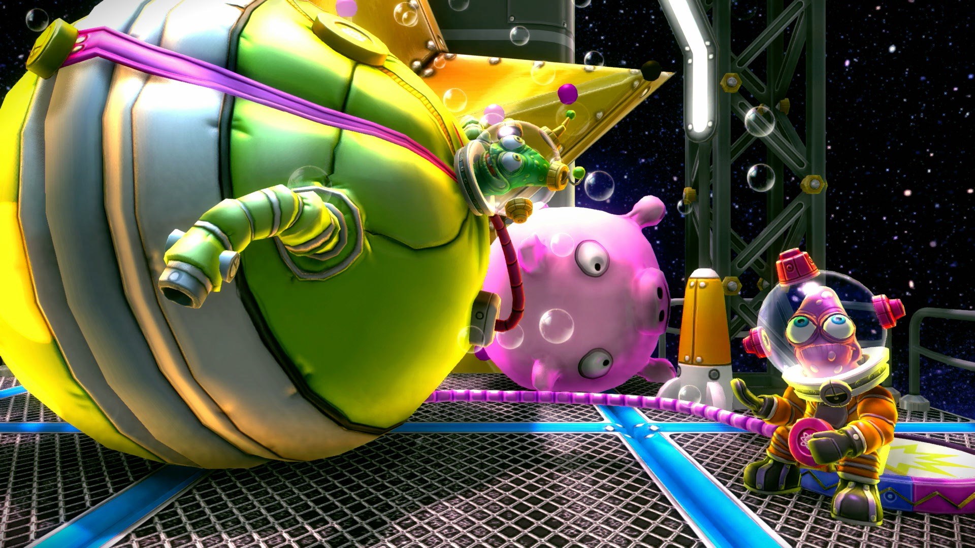 The galaxy's biggest no-brainer! Control two adorably dim-witted alien space janitors on their quirky quest to repair the galaxy! Strategic Single Player & Co-op Missions: Play on your own, challenge a friend locally or across the galaxy (online). Over 50 Dynamic Interplanetary Puzzles: 5 themed planets with over 10 levels each which increases in difficulty as players advance. Cosmic Challenges of Size & Space: Shift weight between the custodian cosmonauts quickly to avoid traps. High Re-playability: Blast back to the beginning to discover new hidden collectibles to unlock more secrets to the universe."
