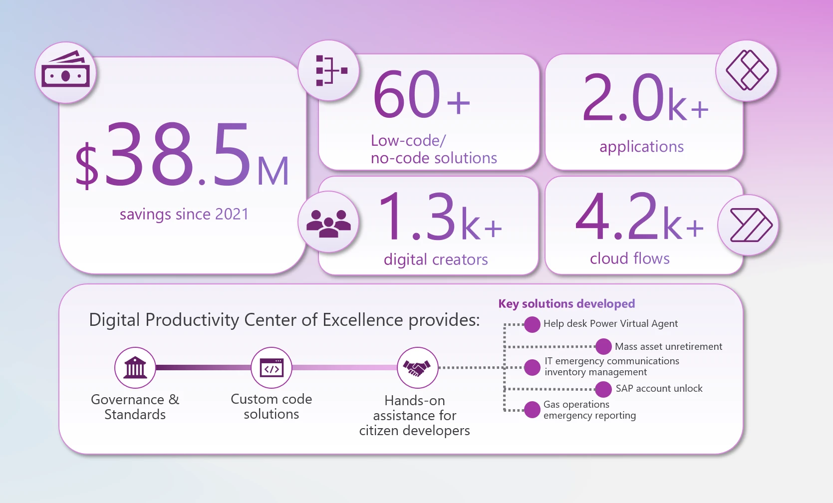 Lumen Technologies has cultivated an active community of “Lumen Makers” – over 800 professional and citizen developers across the company building Power Platform solutions, some of which have increased efficiency of their business processes by over 90%.