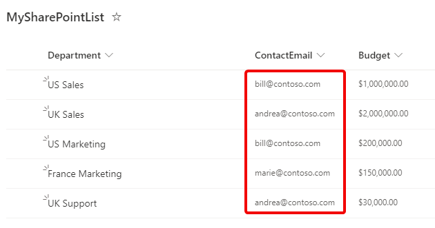 - The column on that list “ContactEmail”