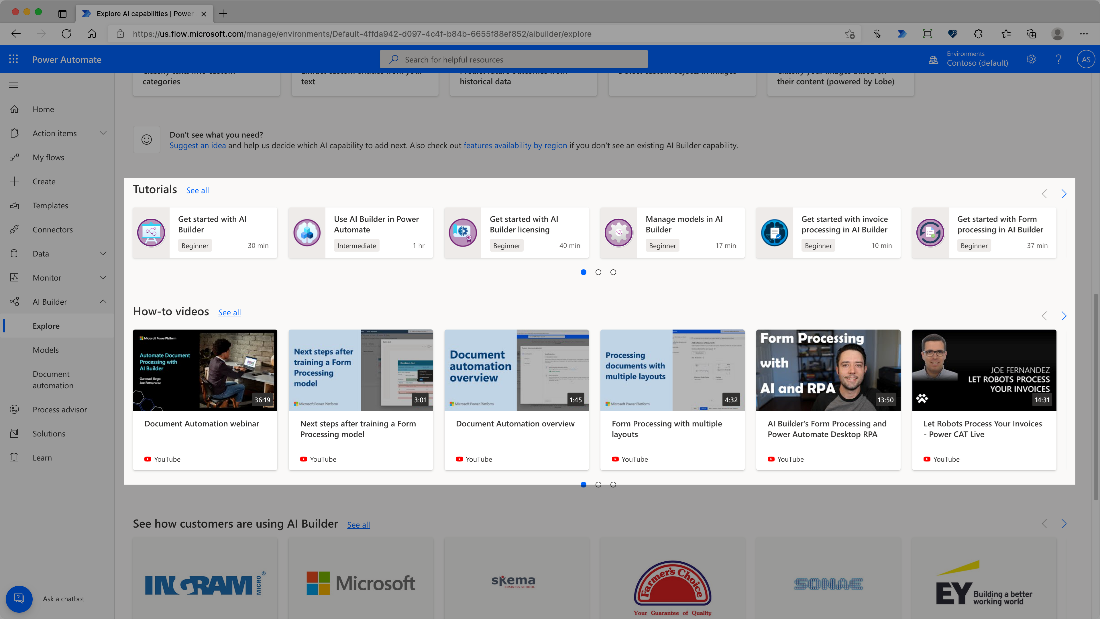 Finally, you can get inspiration from other customers who enhanced their processes with AI Builder and be informed about the latest additions made to the product.
