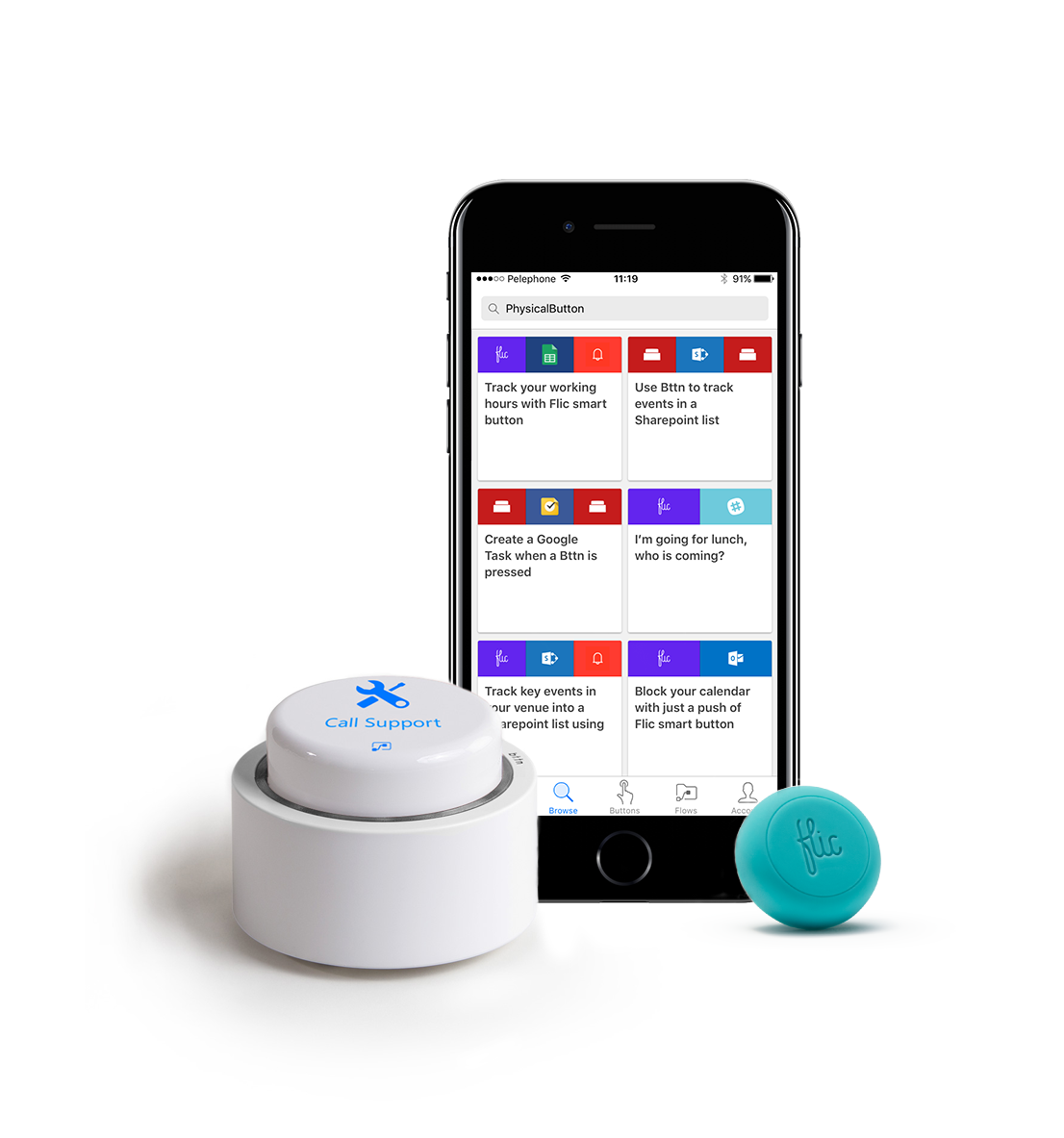 Customers can leverage Microsoft Flow and Flic buttons to keep quick count of your product in selling points, log the number of onsite participants at an event, keep track of work hours, and many more tasks that can benefit from automation. Check out these Flic templates to get started.