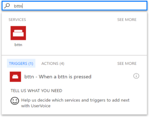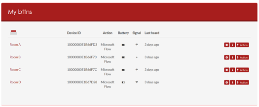 For our ‘Call support’ scenario, you can set up your Bttn with the relevant name (in this case it can represent the room name), and map it to a “Microsoft Flow” Action: