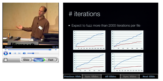 - In 2008, Jason Shirk, Lars Opstad, and Dave Weinstein presented their Fuzzed enough? When it’s OK to put the shears down (opens in new tab) work at Blue Hat 2008. They conducted analysis of fuzzing results for 250+ Windows Vista parsers and found empirically that 500,000 iterations appeared to be enough to detect at least one crash in most crashing parsers. They also ran one of the fuzzers for 27 million iterations but were unable to “flatten out” the fuzzing curve.