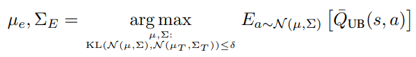 Optimistic Actor Critic (OAC) makes use of the principle of optimism in the face of uncertainty, optimizing an upper bound rather than a lower bound to obtain the exploration policy. Formally, the exploration policy is defined by the formula below.