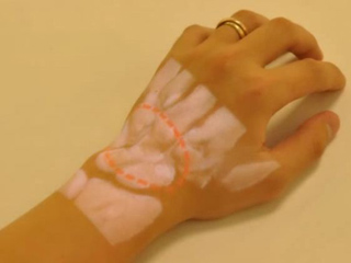 AnatOnMe is a projection-enabled mobile device designed to improve patient-doctor communication in a medical setting.