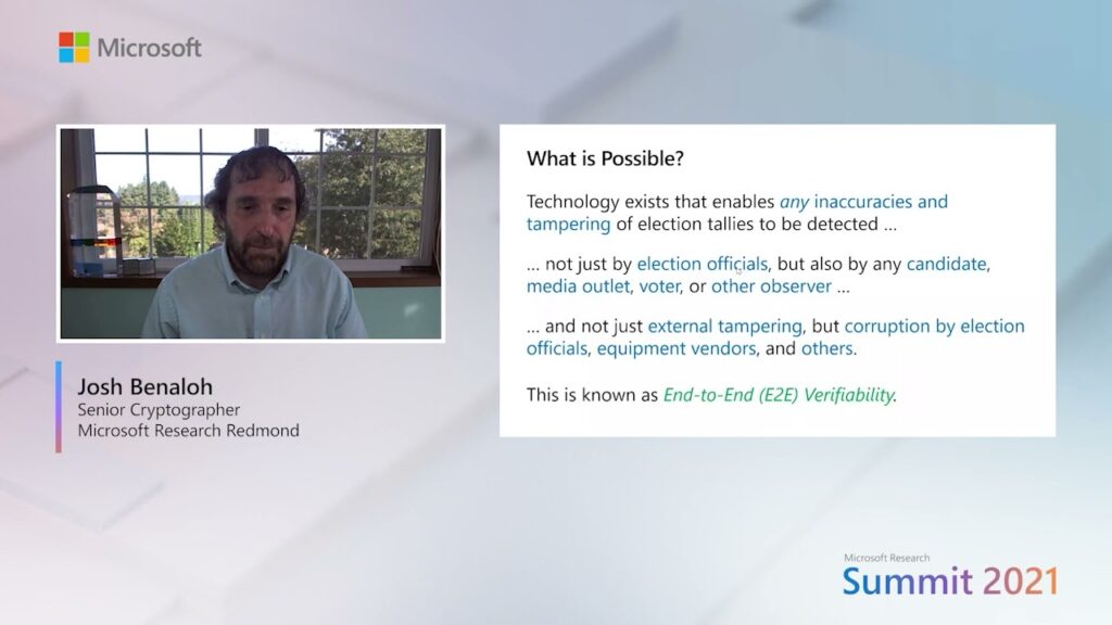 00:00 Tutorial: ElectionGuard: Enabling voters to verify election integrity Speaker: Josh Benaloh, Senior Principal Cryptographer, Microsoft Research Redmond This tutorial will describe Microsoft’s free, open-source ElectionGuard toolkit, which can be incorporated into new and existing…