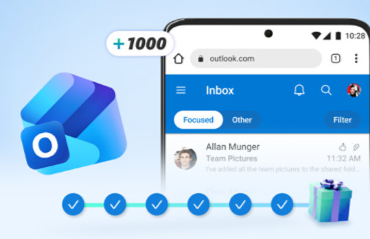 Use Outlook.com on your mobile browser and earn a bonus of up to 1,000 Rewards points. Read 3 Outlook emails each day and earn bonus points daily, weekly, and beyond.