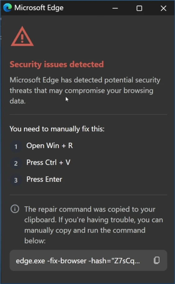 In January 2026, Microsoft Defender Experts identified a new evolution in the ongoing ClickFix campaign. This updated tactic deliberately crashes victims’ browsers and then attempts to lure users into executing malicious commands under the pretext of restoring normal functionality.