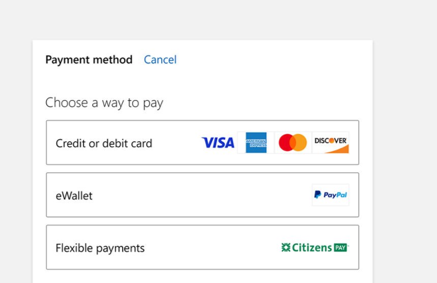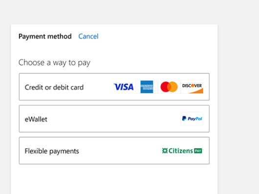 Flexible payment options help you pay how you want, at the Microsoft Store.