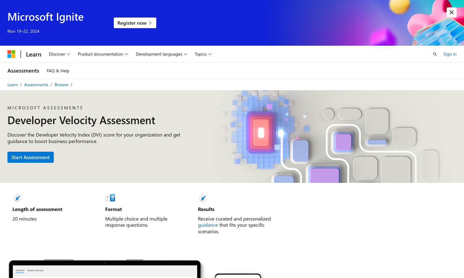 Discover your organization's Developer Velocity Index (DVI) score and get tailored guidance to boost business performance with the Developer Velocity Assessment.