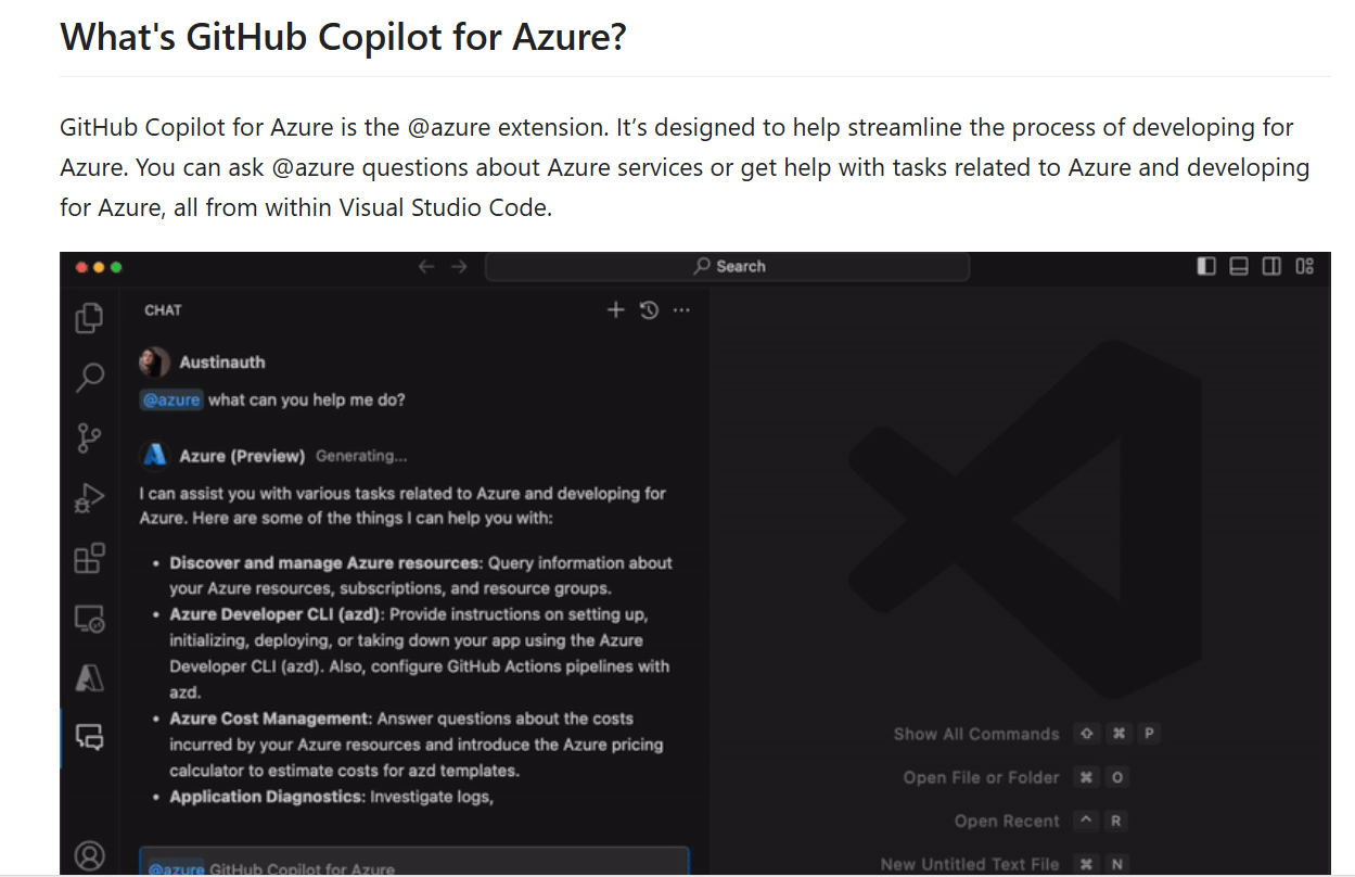 Streamline Azure development with GitHub Copilot. Get AI-powered assistance for Azure services directly in Visual Studio Code.