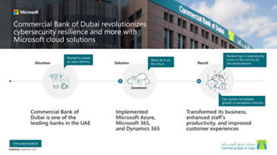 "Supporting the backbone of the UAE economy requires scalability," said Thomas Cherian, CIO at the Commercial Bank of Dubai, an institution that has fueled the nation’s aspirations of sustainable prosperity for over half a century. With that in mind, it has migrated its critical systems to Microsoft Azure, used Microsoft 365 to improve internal collaboration, and adopted Dynamics 365 to deliver more personalized services. Its cloud-first approach has helped improve customer experience, build trust with enhanced security, and sustain remarkable growth in transaction volumes.