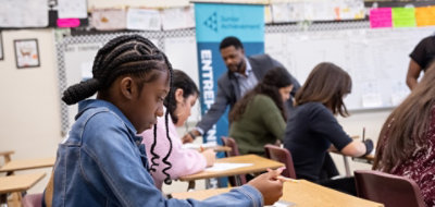 On a busy street, a restaurant manager, construction worker, delivery person, and pharmacist all work hard to keep their community running. Except this isn’t a real town, and the “workers” are kids. As part of Junior Achievement’s (JA) BizTown, students get hands-on experience testing out jobs, running a business, and earning a paycheck. The program is just one of the nonprofit’s learning opportunities that reach more than 4.4 million students every year.